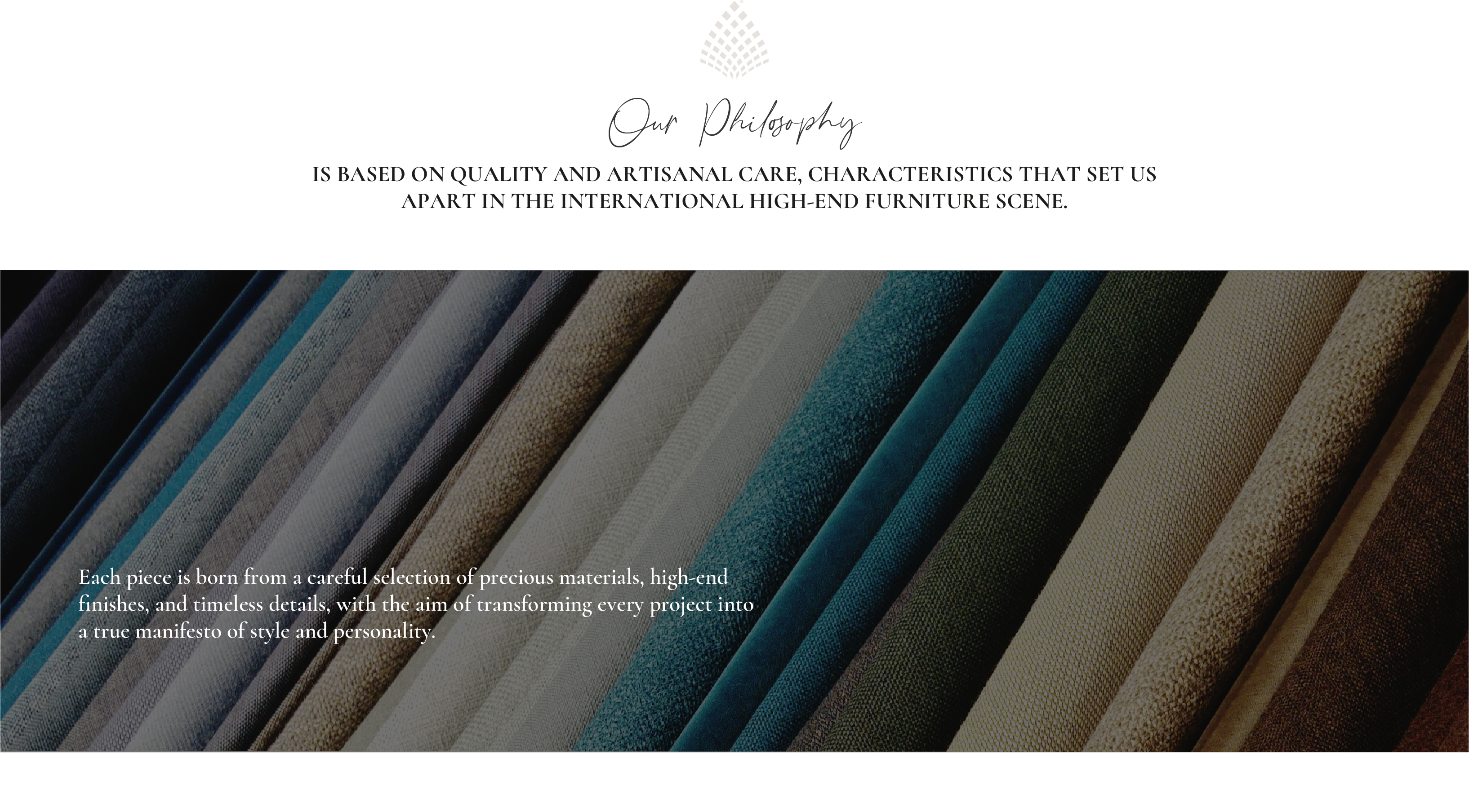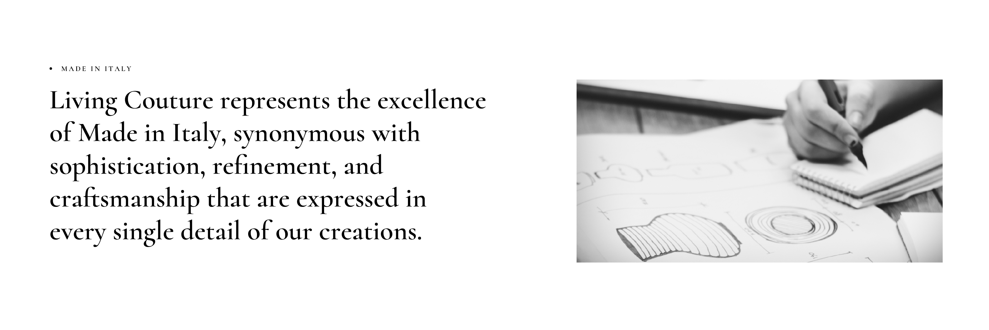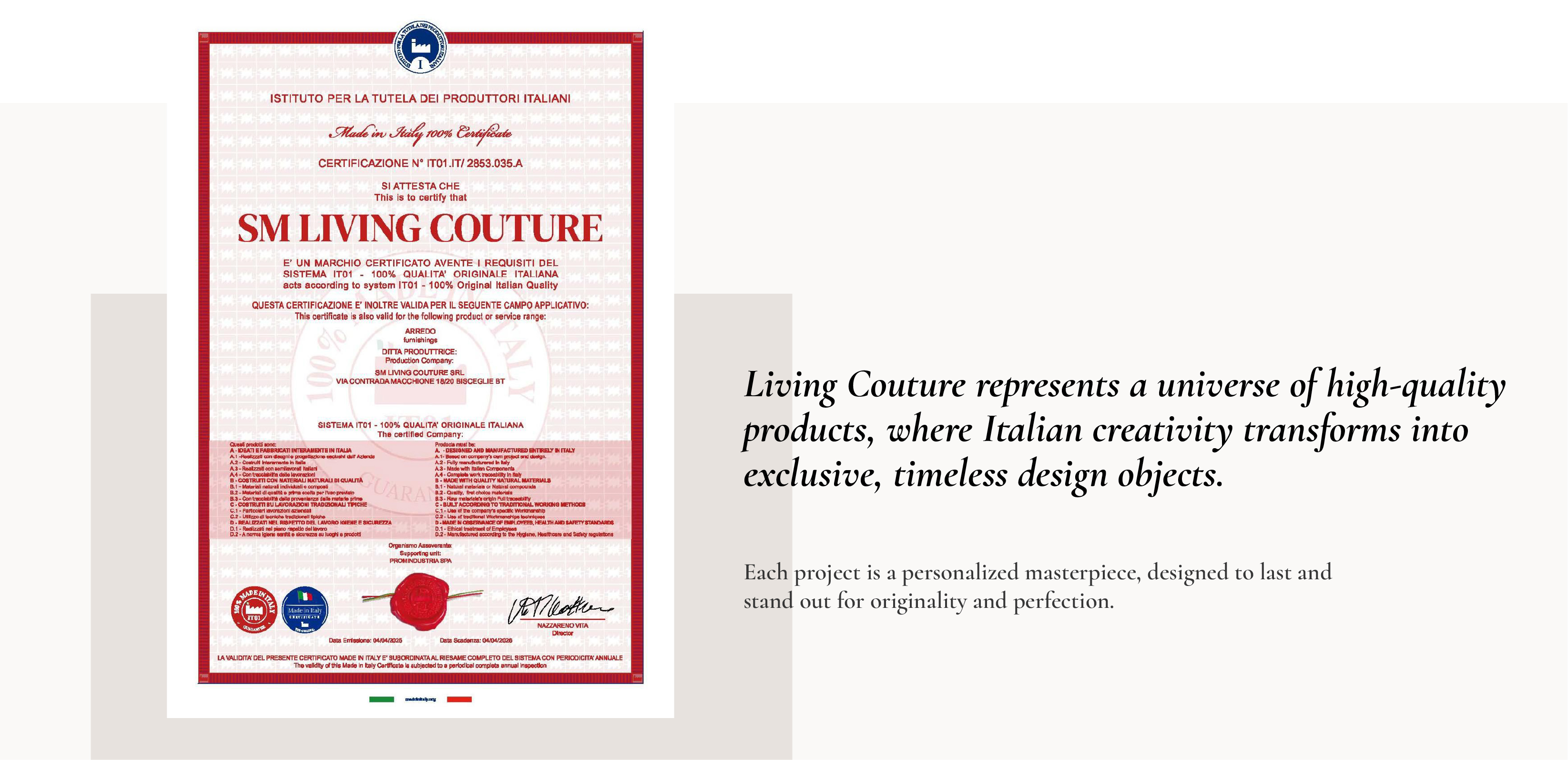 Our production, strictly 100% Made in Italy, combines tradition and innovation: from the selection of the most refined materials to detailed design and handcrafted execution of each component, every phase is carried out with passion and mastery.
